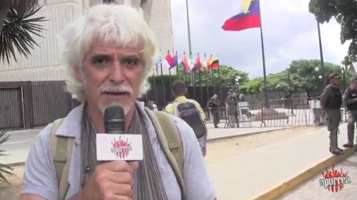 Lunes, 11 de junio de 2018.- La amenaza a la vida que representa el Arco Minero está, en estos momentos, avanzando peligrosamente, dijo Santiago Arconada como parte de la entrevista que se le hizo el día Mundial del Ambiente, frente de la sede principal del TSJ en Caracas, donde un grupo de activistas presentó un documento al máximo tribunal de la Nación, para recordarles a magistrados y magistradas que manejan el caso del Arco Minero del Orinoco, que ya han pasado mas de dos años desde que se introdujo el recurso de nulidad por inconstitucional e ilegal del decreto 2248 que lo creó y que hasta el momento no se ha obtenido respuesta de este tribunal, por lo que está en mora con los ciudadanos de este país y con toda la Nación.