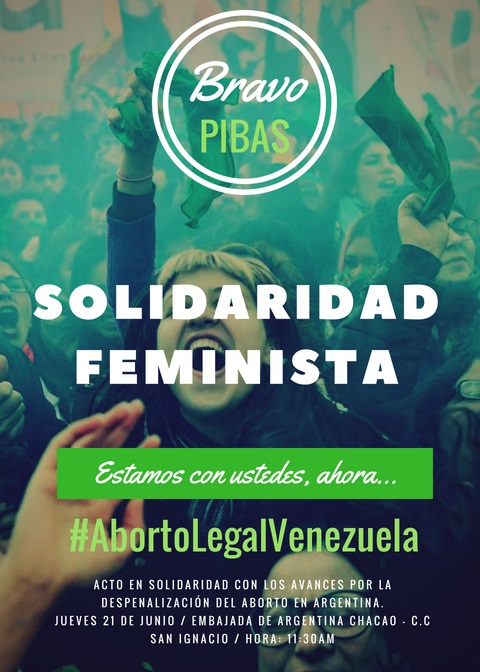 Nosotras, venezolanas, feministas y autónomas nos concentramos hoy en la Embajada de Argentina en Venezuela, para solidarizarnos con las luchas de las mujeres argentinas que gracias a su trabajo constante y coherente y a sus extraordinarias movilizaciones han dado un paso gigante en la conquista de una demanda histórica: que la cámara de diputados de esa nación haya aprobado la legalización del aborto, entendido este como la conquista del derecho a decidir sobre nuestro cuerpo, a decidir cuándo y en qué condiciones queremos y podemos tener un hijo o simplemente no hacerlo. A estas alturas del siglo, es simplemente vergonzoso que se mantengan legislaciones regresivas que en última instancia sobreviven para asegurar el control del Estado y de las Iglesias sobre los cuerpos de las mujeres. Las mujeres argentinas comprometidas con la lucha feminista han derribado uno a uno los obstáculos impuestos y finalmente están a un paso de la victoria final, esto es: que el aborto en Argentina sea ley.