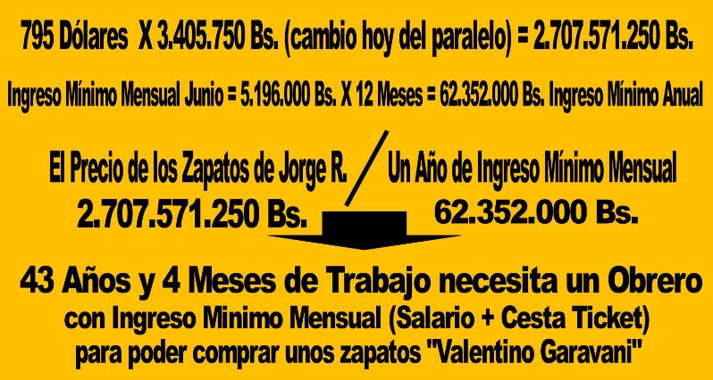 Según información compartida por usuarios de la red social Twitter estos zapatos estarían valorados en más de 2 millardos de bolívares (unos 795 dólares), cuestión que supera ampliamente un ingreso mínimo mensual de cualquier funcionario público, incluso el de más alto nivel.