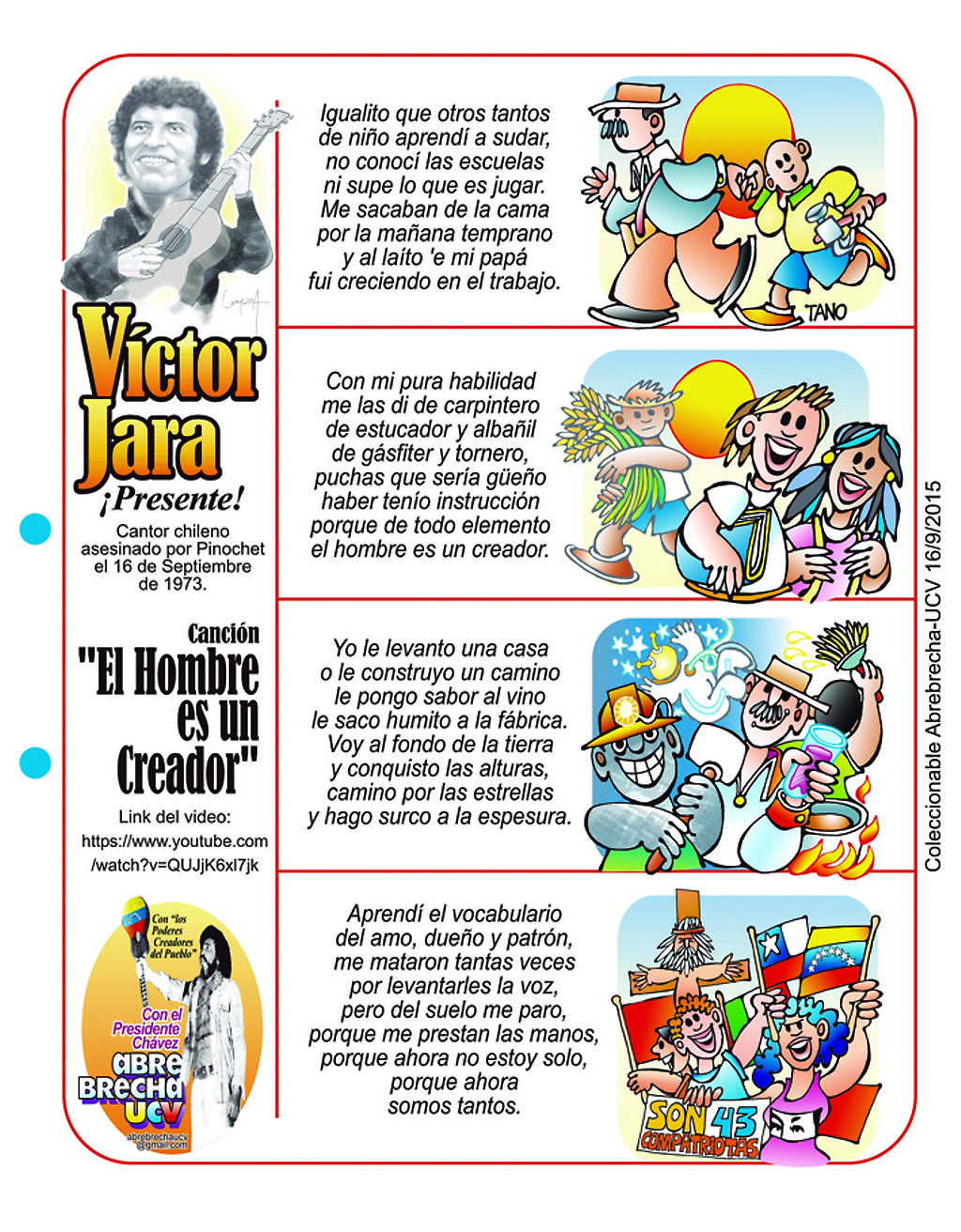 20 de septiembre de 2018.- (Afiche, Poema, canciones) Víctor Jara, "La Tabla de la mano", a 45 años de su asesinato.