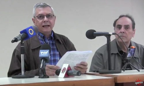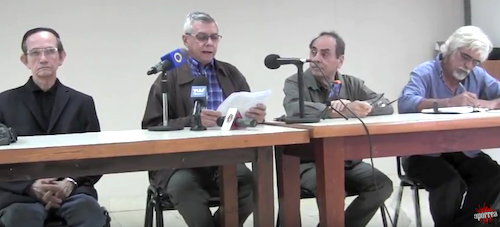 Inicialmente, Gonzalo Gómez, como vocero de la Plataforma en esta oportunidad, abrió la rueda de prensa con la lectura de una Declaración que presentamos de forma integral a nuestros lectores y lectoras, aporreadores y aporreadoras.