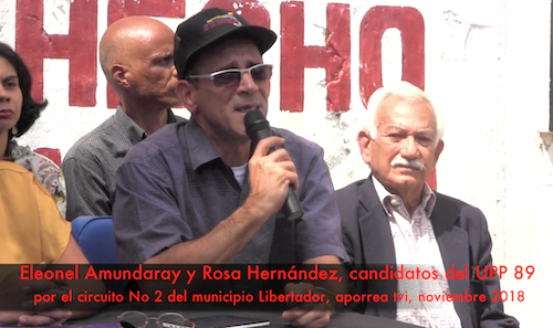 Jueves, 29 de noviembre de 2018.- Dentro del acto celebrado el martes 27, en la plaza Lina Ron ubicada en el centro de Caracas, donde la UPP 89 presentó a sus candidatos para el municipio Libertador, estuvieron presentes Eleonel Amundaray ''Picua´´ y Rosa Hernández.