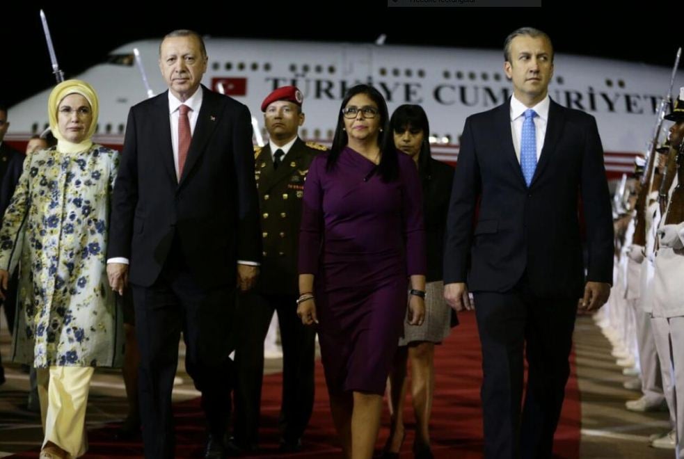 El mandatario turco llegó la noche de este domingo al país. Fue recibido por la vicepresidenta Ejecutiva de la República, Delcy Rodríguez y el vicepresidente del Area Económica, Tareck El Aissami, en el Aeropuerto Internacional Simón Bolívar, en Maiquetía.