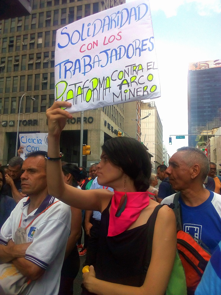 La más reciente ola de movilizaciones que se ha desplegado por todo el país ha infundido un nuevo aliento en amplios sectores sociales que día a día manifiestan su rechazo hacia un gobierno autoritario y opuesto a los intereses de la mayoría del pueblo venezolano, ese que vive del trabajo y esfuerzo honestos. Desde la Plataforma contra el Arco Minero queremos expresar nuestra más completa identificación con las banderas que enarbola el movimiento de trabajadores públicos, que hoy se han unificado bajo un organismo de amplia articulación como es el caso de la Intersectorial de Trabajadores de Venezuela con el fin de reclamar sus derechos.