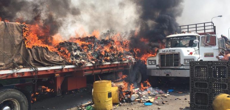Pero hay un problema: la oposición en sí misma, no los hombres de Maduro, parece haber incendiado la carga accidentalmente.