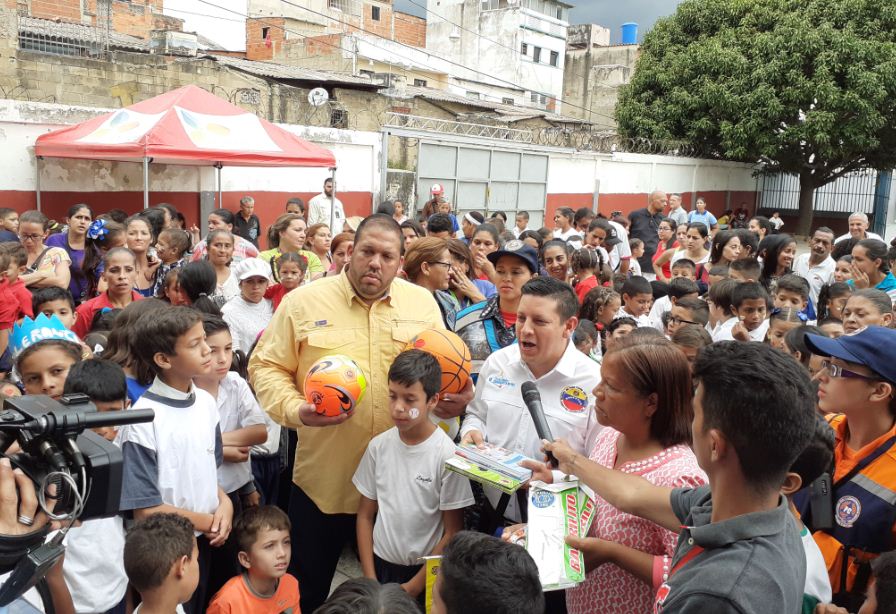 Harim Rodríguez, comisionado Nacional del Frente Preventivo, en compañia del presidente de Fundapret, Alexander Guaramatos y representantes de los entes del Ministerio del Poder Popular para Relaciones Interiores, Justicia y Paz, informó: "hemos venido a comprometernos con la institución educativa y a hacer entrega de materiales deportivos y útiles escolares y además, coordinar diferentes talleres en materia de prevención, para todos los alumnos de ésta escuela".