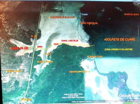 Una vez obtenidos los permisos de las autoridades, la empresa Blue Lake inició las obras de dragado, afectando directamente el terraplén del canal el libre flujo del Caño Tibana, que constituye la única fuente de agua dulce hacia la Albufera Sur, así como el caño el Buco, los bajos intermareales y la Zona Virgen o Silvestre, ubicada en la zona interna del Golfete de Cuare, último bastión natural con que cuenta el refugio para preservar la biodiversidad representativa de esta área natural, concluye el informe.
