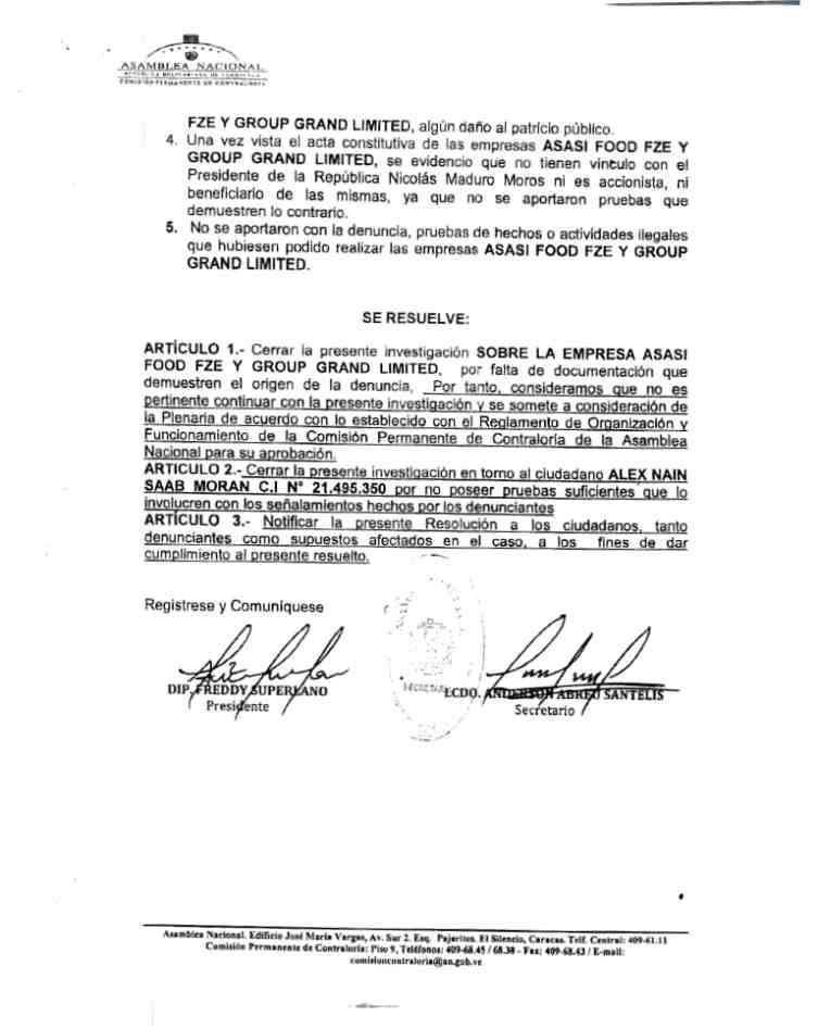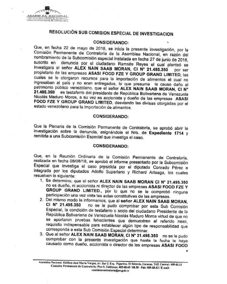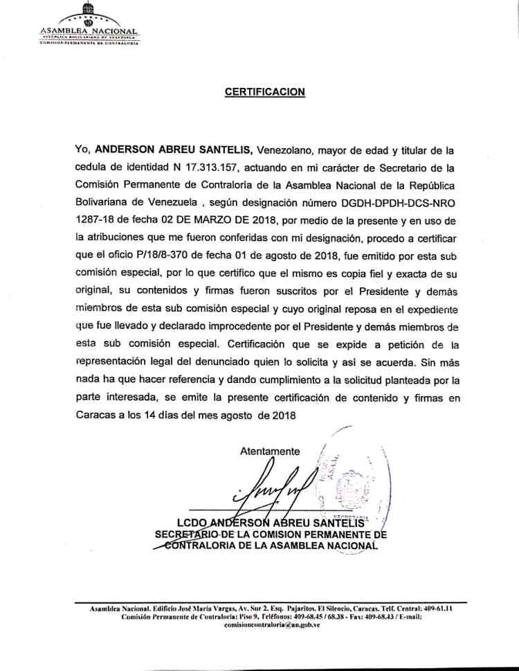 Cartas de la Comisión de Contraloría en favor de Alex Saab y sus empresas by ArmandoInfo en PDF