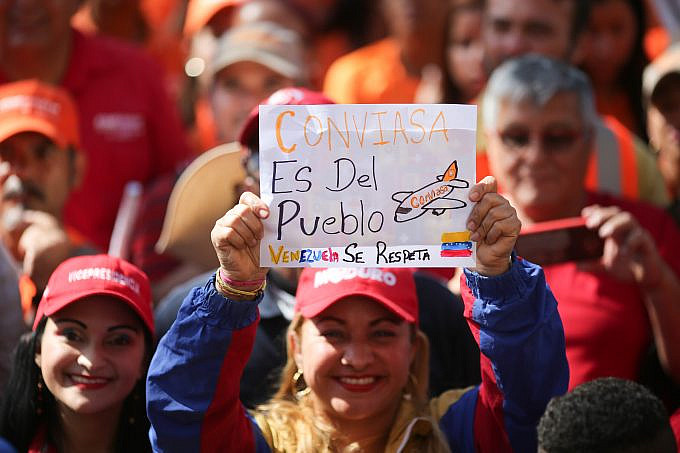 Durante el masivo despliegue del pueblo venezolano, el Presidente Nicolás Maduro, utilizó su cuenta en la red social Twitter para felicitar "la solidaridad de las organizaciones sindicales, los CPT, el pueblo trabajador, el @PartidoPSUV y el Poder Popular, quienes se movilizan en rechazo a la arbitraria, ilegal y obsesiva agresión imperial contra nuestra aerolínea bandera Conviasa".