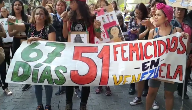 La denuncia con fuerza de los casos de femicidios y la exigencia de que se muestren las cifras emplaza a la institucionalidad a que se coloque a la altura ante el asesinato de una mujer diaria en Venezuela. Se corearon consignas en contra de los retardos procesales y se pudo escuchar a voces de las participantes las cifras de femicidios basadas en una investigación independiente ante la ausencia de estadisticas en el tema.