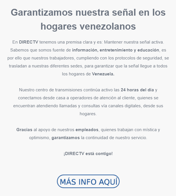 Con relación a la medida, DirecTV Venezuela envió un correo electrónico a sus usuarios «garantizando su señal en todos los hogares»