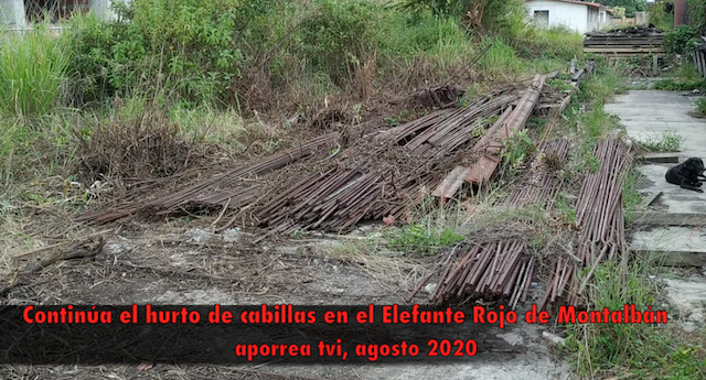 Lunes, 03 de agosto de 2020.-  El viernes 31 de julio tuvimos oportunidad de acercarnos a la obra inconclusa y abandonada del Cardiológico de Adultos y Oncológico de Montalbán, conocida como El Elefante Rojo de Montalbán, ubicado en la avenida Teherán frente a la sede de la Conferencia Episcopal de Venezuela y pudimos corroborar que continúa el hurto de material de construcción, de cabillas almacenadas en esta obra.