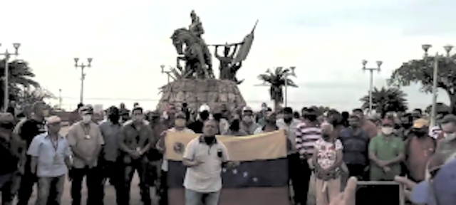 Miércoles, 05 de agosto de 2020.- Trabajadores petroleros se concentraron este martes en la plaza Bolívar de San Francisco, Edo. Zulia. Esta es parte de una serie de movilizaciones que han realizado para exigir la restitución de condiciones dignas de trabajo-