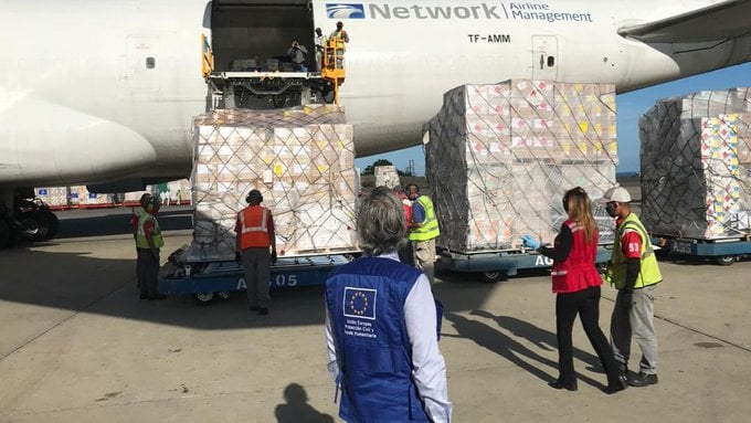 23.08.20 - El Gobierno venezolano recibió este sábado 73 toneladas de ayuda humanitaria de la Unión Europea, procedente de España y Portugal, para hacer frente a la pandemia del COVID-19, informó el viceministro Yván Gil.