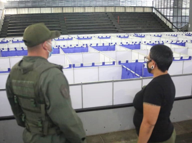 Durante el recorrido la alcaldesa visitó el Parque Naciones Unidas, ubicado en la parroquia El Paraíso, espacio destinado para atender a 171 pacientes asintomáticos. En este recinto deportivo ya se encuentran instalados los equipos tanto militar, médico y logístico, comentó.