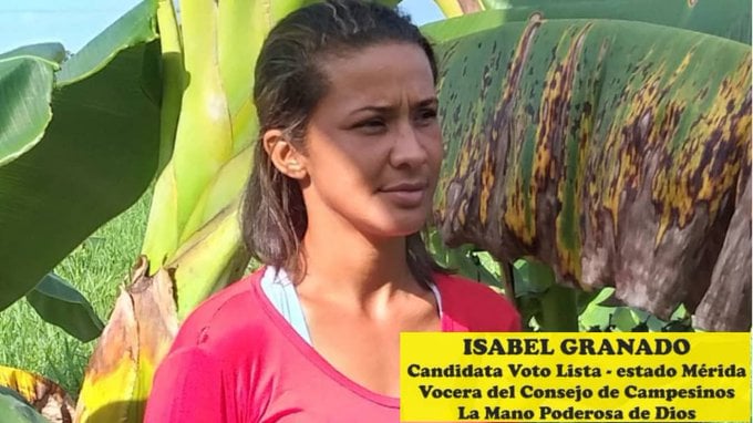 La candidata, quien va a aparecer en la boleta y está siendo apoyada por la tarjeta del Partido Comunista de Venezuela (PCV), viene encabezando una lucha por la tierra del Consejo Campesino La Mano Poderosa de Dios en el predio El Trompillo, el cual fue decretado tierra ociosa por el INTI en 2008 y donde los campesinos productores iniciaron una recuperación en el 2018. Desde la APR Mérida responsabilizamos a la Jueza, al ex terrateniente Alejando Bueno Castro y a las instituciones de estado por la seguridad física y psicológica de todos nuestros candidatos, y llamamos a todas y todos los campesinos, todas y todos los que luchan por los derechos humanos y los derechos de las mujeres, por la equidad política, y contra la corrupción y los abusos de poder, a unirnos en alzar su voz en solidaridad con Isabel ahora, el 6 de diciembre y después. No queremos más mártires como Luis Fajardo y Javier Aldana en la lucha campesina.