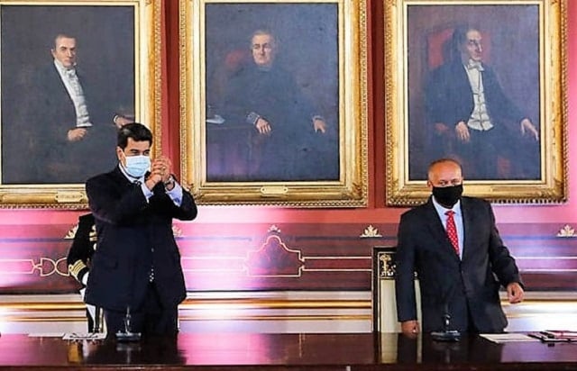 Diosdado Cabello, presidente de la ANC, muestra el proyecto de