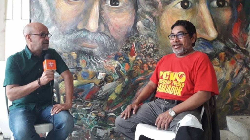 El secretario general del PCV nos recibe en Cantaclaro, en el hall del teatro de la legendaria casa del partido en San Juan.