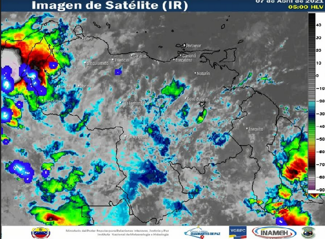Se espera que las mismas sean más intensas luego del mediodía en áreas del Zulia, Falcón, Yaracuy, Carabobo, Aragua, Cojedes, Portuguesa, Barinas, Apure, Guárico, Amazonas, Bolívar y el Esequibo, con acumulados pluviométricos entre 15 y 90 l/m².
