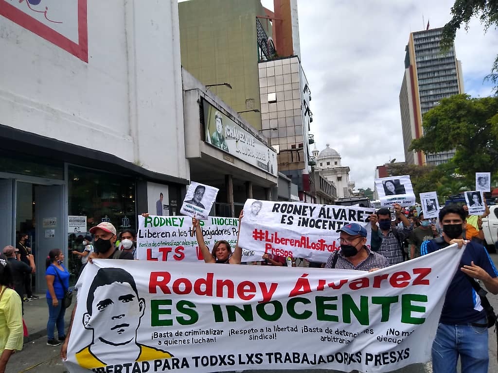 23 de julio de 2021.- Este jueves 22 de julio se realizó un acto-marcha para exigir la libertad de las y los trabajadores presos así como la de Rodney Álvarez, trabajador de ferrominera, éste último encarcelado desde hace una década por un crimen que no cometió.