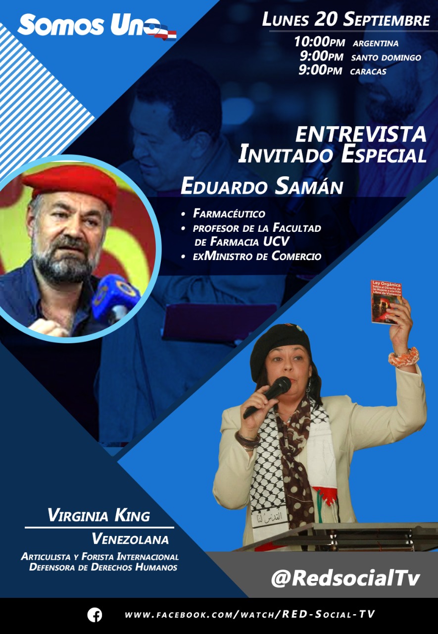 Este lunes 20 de septiembre de 2021, será entrevistado Eduardo Samán, por la activista y defensora de Derechos Humanos, Virginia King.