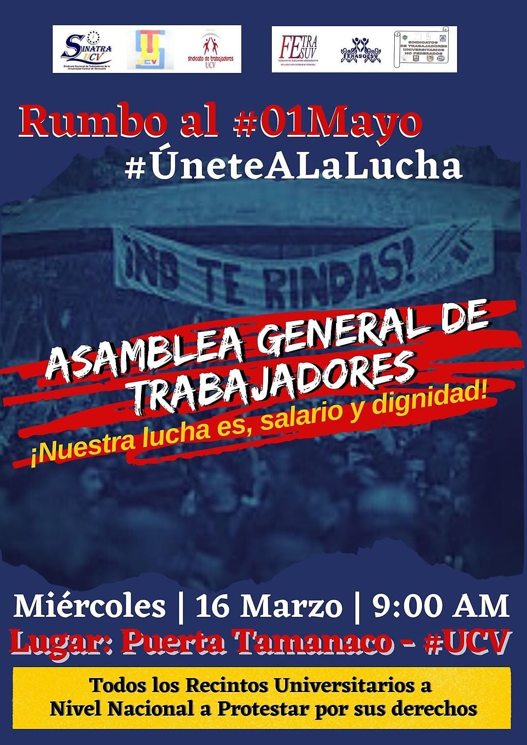 Miércoles 16, 9:00 am en la Puerta Tamanaco de la UCV.
