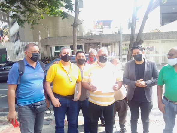 8 de abril de 2022.- En el marco de la jornada internacional de solidaridad en defensa de Elie Domota, ex-Secretario General de la Unión General de Trabajadores de Guadalupe (UGTG), contra quien, el gobierno francés ha sometido a una intensa persecución política, un grupo de sindicalistas encabezados por Raúl Ordóñez, Presidente de la Federación de Sindicatos de Empresas Hidráulicas de Venezuela (Fedesiemhidroven), acompañado por Nelson J Herrera Pérez, Coordinador Nacional de Trabajadores de la Vivienda del Sector Público (SINTRAVISEP), Frank Quijada. Presidente del sindicato de trabajadores de empresas, directivos de las hidrológicas, Trujillo, Mérida, Carabobo, Zulia, hicieron entrega de una carta en la embajada francesa en Caracas, dirigida al Embajador: Romain Nadal, exigiendo el retiro de los cargos contra Elie Domota.