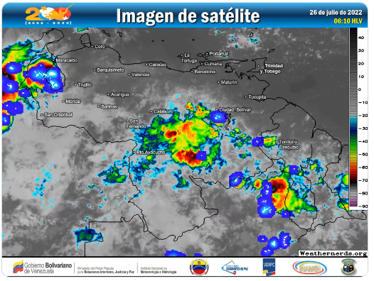 26 de julio de 2022.- El Instituto Nacional de Meteorología e Hidrología (INAMEH) en su pronóstico para este día, nubosidad fragmentada en casi toda Venezuela.