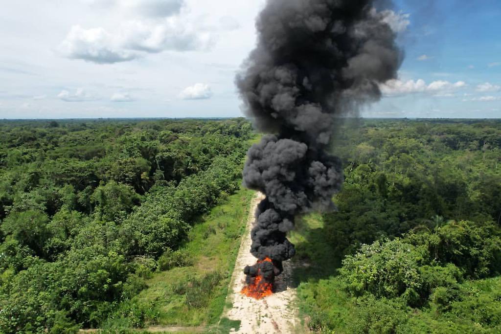 "En operaciones de inutilización de pistas ilegales en Zulia, URRA de combate de la GNB en pista L13, incauta y destruye mil litros de gasolina de avión y 180 bombillos para balizaje nocturno", refiere el mensaje.