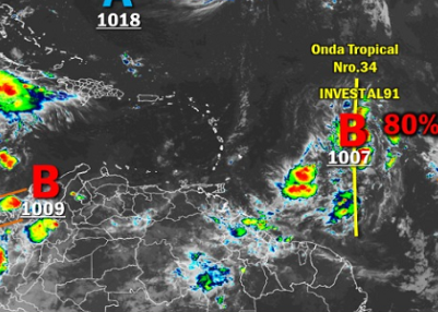 En su página web, explicó que para los estados Zulia, Amazonas, Bolívar, Delta Amacuro, Llanos Occidentales, los Andes y el Esequibo se esperan áreas nubladas con lluvias y posibles descargas eléctricas.