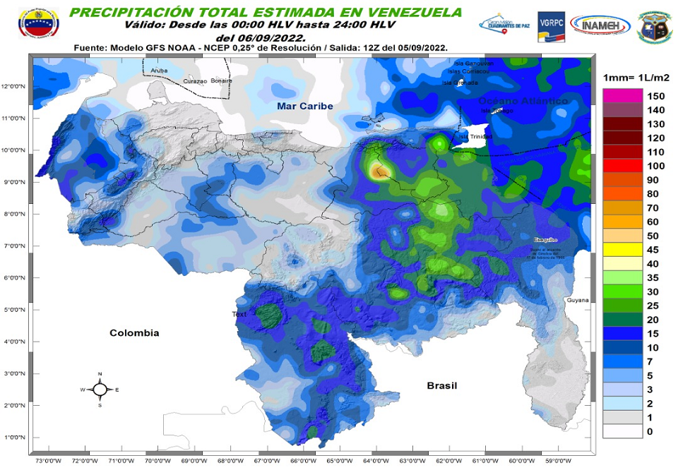 6 de septiembre de 2022.- Algunas áreas nubladas y precipitaciones de intensidad variable son las condiciones meteorológicas para este día en la mayor parte de Venezuela, según reporta el Instituto Nacional de Meteorología e Hidrología (Inameh).