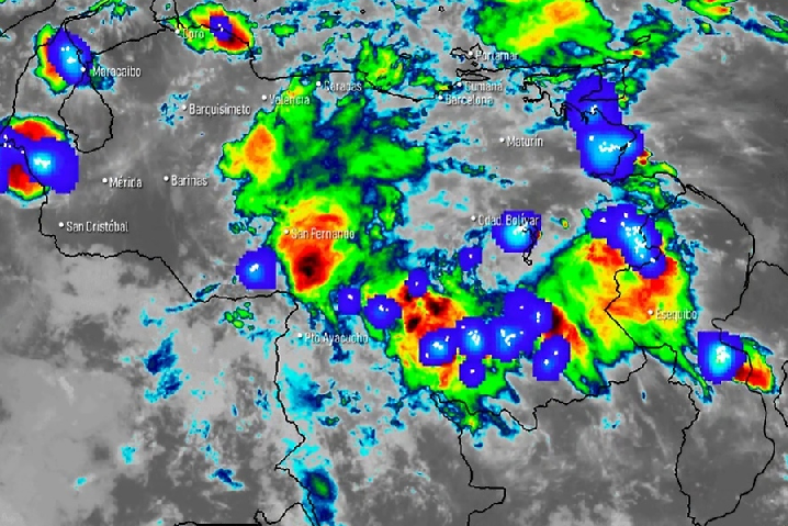 El pronóstico refiere que algunas precipitaciones presentarán descargas eléctricas con mayor intensidad y frecuencia en los estados Zulia, Falcón, Lara, Apure, Guárico, Delta Amacuro, Amazonas, Bolívar y la región de Los Andes, Zona Insular, Nororiente y El Esequibo.
