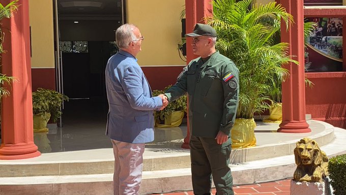 24-09-22.-Los ministros de Defensa de Colombia, Iván Velásquez y de Venezuela, Vladimir Padrino López se reunieron en la frontera entre ambas naciones, como parte de las actividades previas a la reactivación del tránsito en la zona limítrofe.