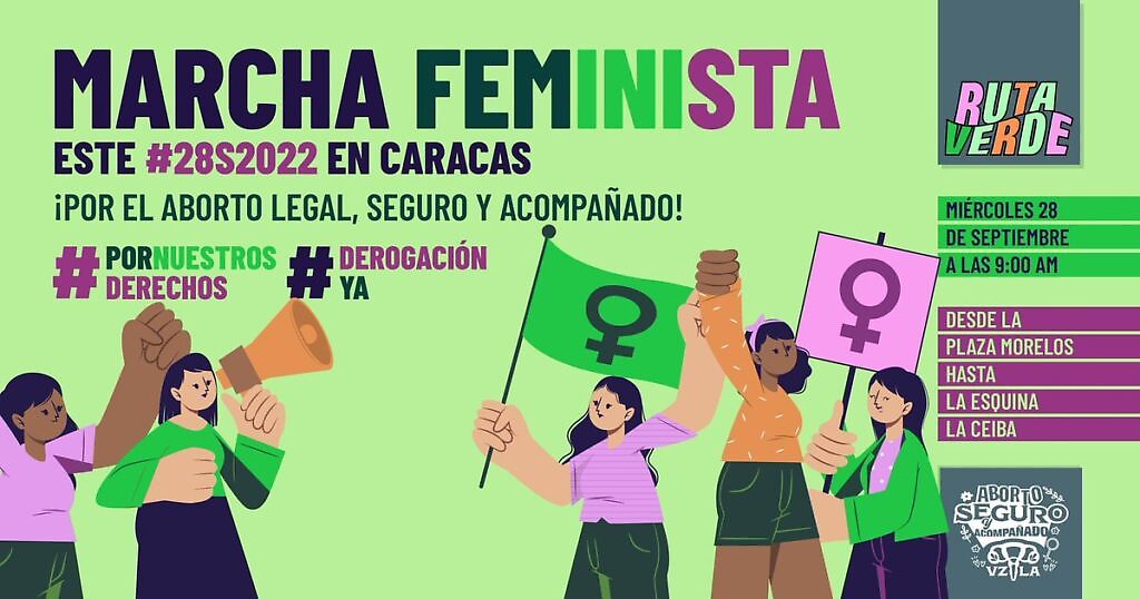 28 de septiembre de 2022.- Por la defensa del aborto seguro y acompañado, la Ruta Verde, campaña y plataforma por la despenalización legal y social del aborto en Venezuela, este 28 de septiembre se llevará a cabo una movilización en Caracas, a partir de las 9am, desde la plaza Morelos hasta la esquina La Ceiba de la Asamblea Nacional.