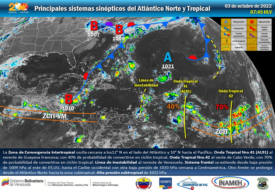 3 de octubre de 2022.- El Instituto Nacional de Meteorología e Hidrología (Inameh) prevé este día lluvias dispersas y lloviznas aisladas en Venezuela para después del mediodía, con precipitaciones algunas con actividad eléctrica.