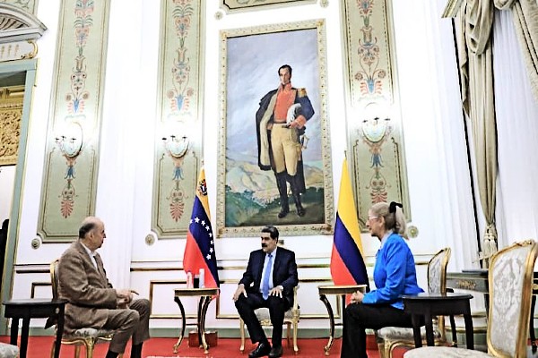 En un encuentro que consolida la voluntad de cooperación bilateral, el Presidente de la presidente de la República, Nicolás Maduro, recibe al canciller de la República de Colombia, Álvaro Leyva Durán, en el Palacio de Miraflores, ubicado en Caracas.
