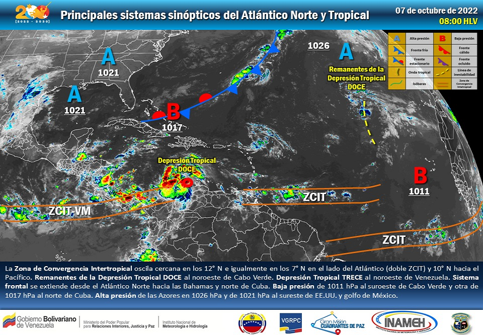 8 de octubre de 2022.- El Instituto Nacional de Meteorología e Hidrología (Inameh) reporta para este día precipitaciones de intensidad variable en gran parte de Venezuela.