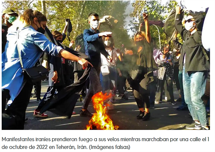 La muerte de Jina Mahsa Amini, una mujer de 22 años detenida por la policía de la moral el 13 de septiembre en Teherán, marcó el comienzo de una oleada de protestas masivas. Las autoridades iraníes sostienen que Amini murió de un ataque al corazón y no asumen ninguna responsabilidad por su muerte, a pesar de que la joven gozaba de una salud excelente y de que hay testigos que declararon que fue golpeada y abusada. Los manifestantes piden que se eliminen las leyes de obligatoriedad del roosari, o hiyab, denuncian la desigualdad económica y hasta exigen el reemplazo completo del gobierno teocrático.