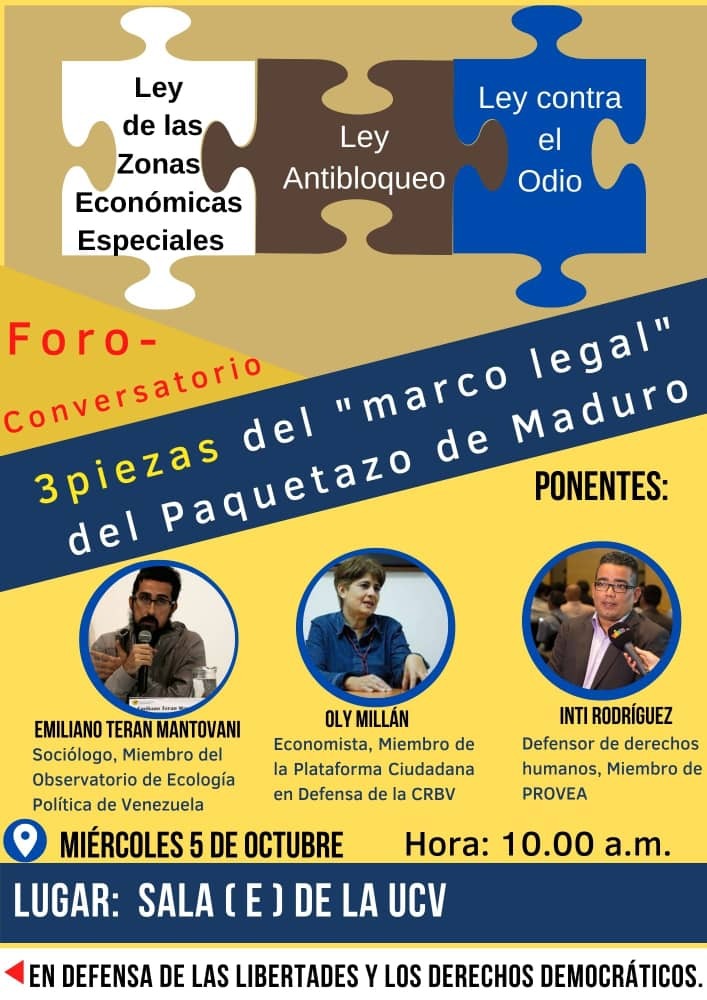 Domingo, 09 de octubre de 2022.- ¿Qué significa estar preso en Venezuela? se pregunta la señora Yorbelis Oropeza, esposa del dirigente Alcides Bracho, quien permanece injustamente detenido, y lo hizo como parte de su intervención durante el inicio del foro organizado por la gente de El Espacio en Defensa de Las Libertades y Derechos Democráticos: “3 piezas del "marco legal” del Paquetazo de Maduro" que se efectuó en la sala E de la Universidad Central de Venezuela (UCV), el miércoles cinco, en la mañana.