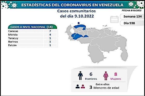 Informó que los casos comunitarios están ubicados en los estados: Caracas (7); Mérida (4); Yaracuy (1); Barinas (1) y Falcón (1).