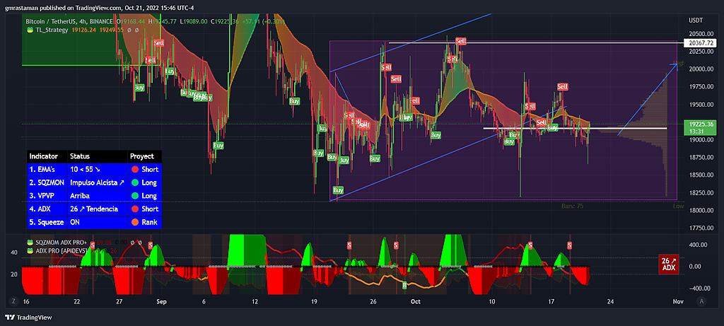 Durante las próximas horas se espera un movimiento alcista al menos hasta la zona de los $19.600. Si el movimiento viene acompañado de volumen, el precio del BTC podría buscar la zona de los $20.000, ya que, según el gráficos de 4 horas, el precio del bitcoin está intentando romper la media móvil de 55 periodos.