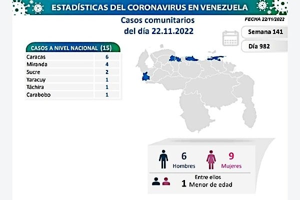 Los casos comunitarios están ubicados en: Caracas 6, Miranda 4, Sucre 2, Yaracuy, Táchira y Carabobo con 1 c/u, informó el Ministro.