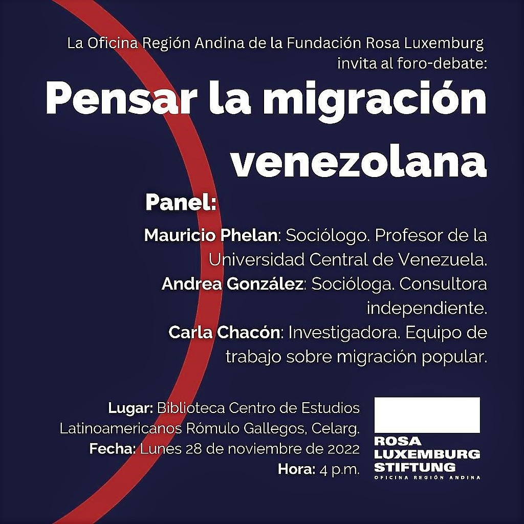 La Oficina Andina de la Fundación Rosa Luxemburg, tiene el gusto de invitarle a participar en el foro-debate: Pensar la migración venezolana.