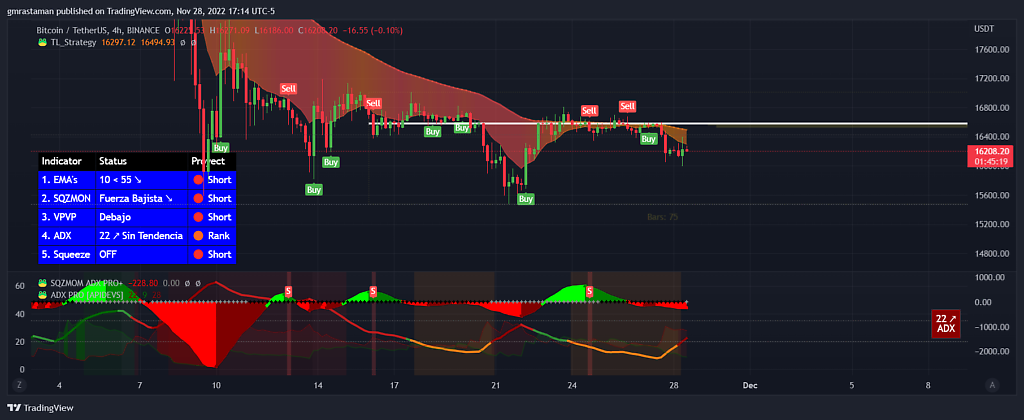 A las 6:00 pm hora de Venezuela, el precio del BTC se encuentra en $16.170 mientras todos los indicadores técnicos predicen una caída en temporalidades de 4 horas.