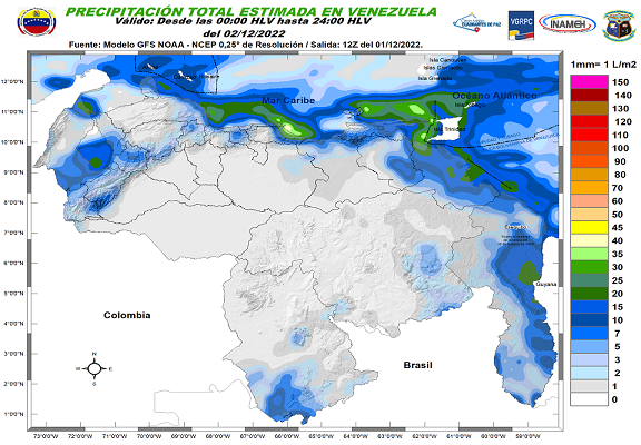 Hacia la tarde y la noche se mantendrá esta nubosidad y evolucionará de manera rápida con lluvias dispersas en Zulia, Táchira, Mérida, Falcón, Miranda, Delta Amacuro, Amazonas, Bolívar y el Esequibo.