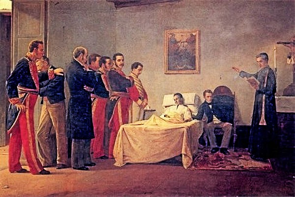 Inmediatamente fue rodeado el lecho del ilustre enfermo, y a los pocos minutos exhaló su último suspiro Simón Bolívar, refiere misionvenezuela.org.