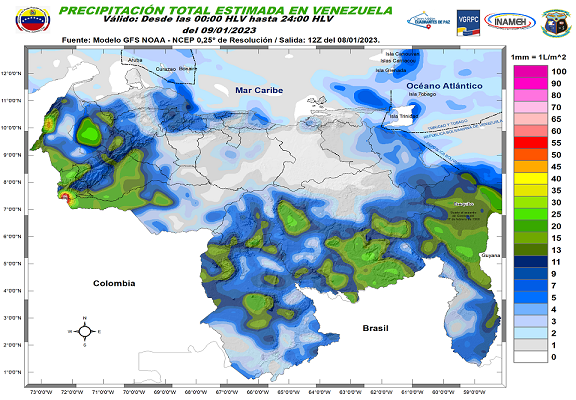 9 de enero de 2023.- De acuerdo al boletín meteorológico suministrado por el Instituto Nacional de Meteorología e Hidrología INAMEH, se presenta una vaguada hacia el noroccidente que genera lluvias, lloviznas y mucha nubosidad en los estados: Yaracuy, Falcón, Miranda, Centro Norte Costero, Sucre, Delta Amacuro y la región insular.