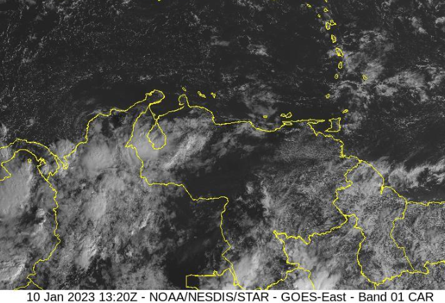 10 de enero de 2023.- Los vientos alisios y la temperatura alta en El Caribe mantienen la nubosidad y las lluvias en la zona costera, región insular, Lara, Yaracuy, Cojedes, Portuguesa y Delta Amacuro.