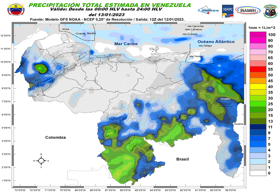 13 de enero de 2023.- Continúa la influencia anticiclónica que origina condiciones de tiempo estable para gran parte de Venezuela.