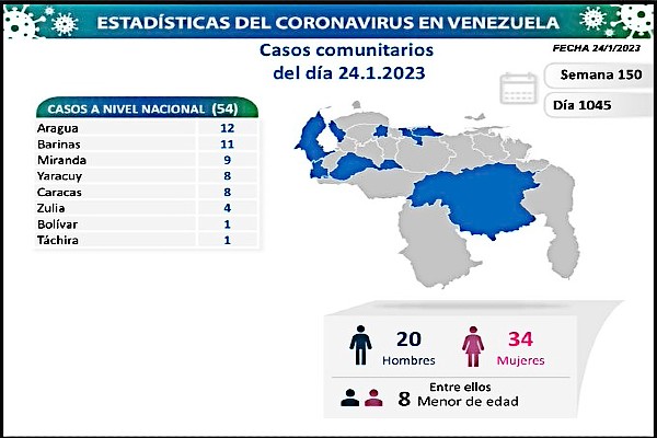 Finalmente se indicó que en la semana 150 y día 1.045 de pandemia en Venezuela, estas son sus estadísticas generales: